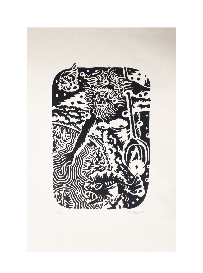 visuel de l’affiche 2023 réalisée pour le festival Jazz à Junas par le street artiste Sunra. Gravure sur bois, rehaussée à la main pour le rouge. | 120,00 € | ||||