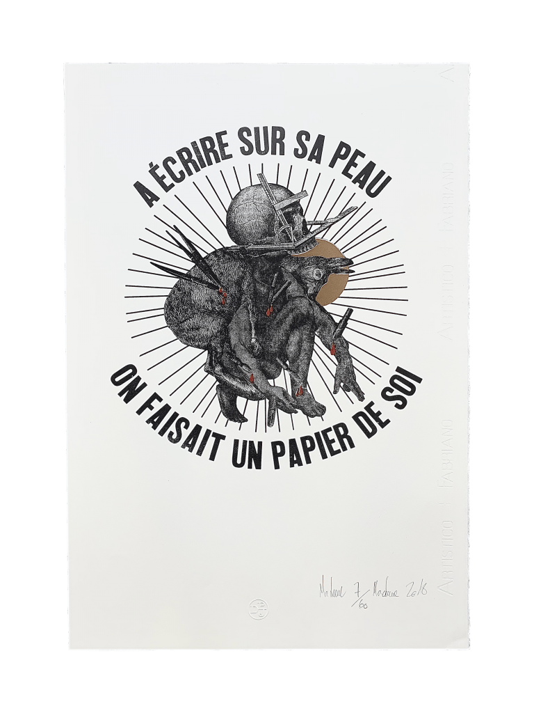 Cliché polymère de l’artiste Madame : oeuvre éditée en photogravure à partir de photographies et collages de l’artiste. Visuel original Atelier DPJ. Oeuvre numérotée en bas à gauche, signature artiste en bas à droite. | 100,00 € | ||||