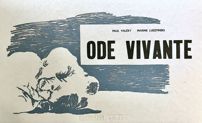 Portfolio de 7 gravures reliées. Ode Vivante, texte de Paul Valéry illustré par l’artiste Marine Luszpinski. Illustrations de l’artiste gravées sur bois, texte composé en lettres de plomb et reliure réalisée par l’atelier Chien de Mer à Sète. Portfolio numéroté et signature artiste en dernière page. | 120,00 € | ||||